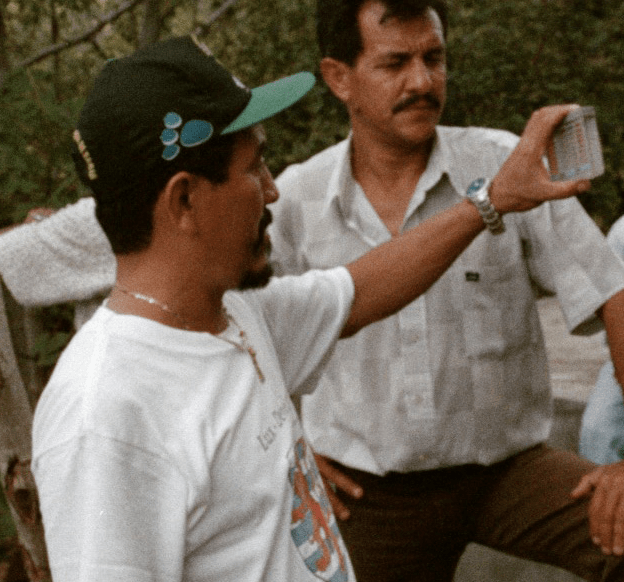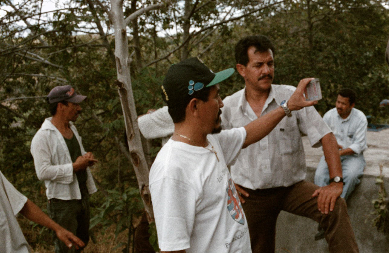 Below: Sergio demonstrating the chlorinator at a workshop in Matagalpa. 2004.