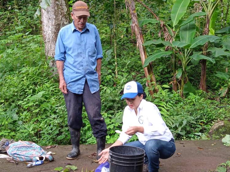 Team leader Giselle Igmara Soto Largaespada discussing the location of a chlorinator installation.